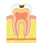 まだ痛みは感じませんが、すでに歯の表面のエナメル質には穴が開いています。