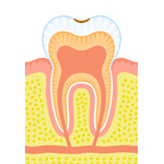 まだ神経に届いていないので強い痛みはありませんが、虫歯菌はエナメル質の下にある象牙質にまで達しています。